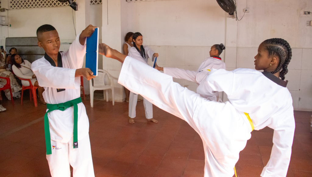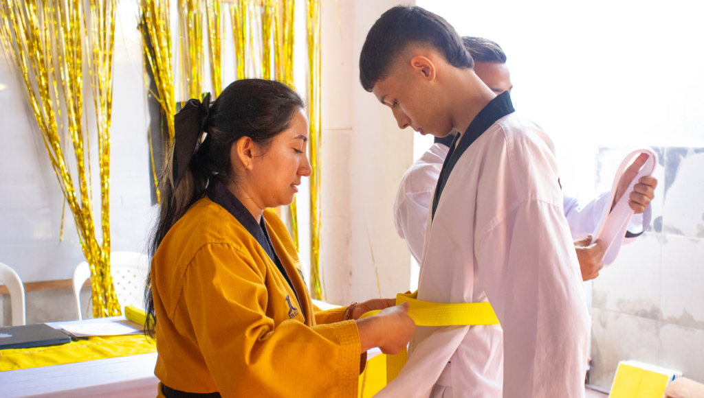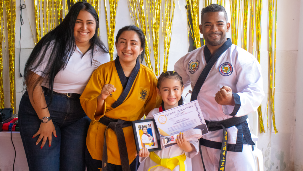 El pasado viernes 12 de diciembre de 2025, la Fundación vivió una jornada llena de emoción y disciplina con la ceremonia de grados del programa de Taekwondo, un espacio que reunió a padres de familia, niñas, niños y jóvenes para celebrar el esfuerzo, la constancia y el crecimiento de cada uno de los participantes, quienes ascendieron oficialmente de cinturón.